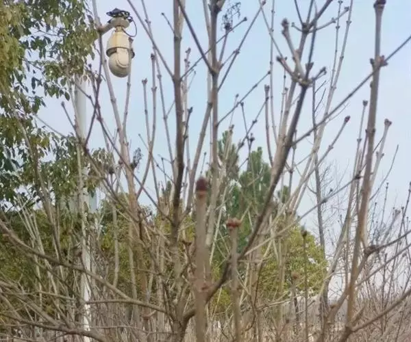 直立型木槿枝条着生角度小,近直立,萌芽力强,成枝力相对较差,不耐长放,可将其培养改造成有主干不分层树形,主干上选留3-4个主枝,其余疏除,在每个主枝上可选留1-2个侧枝,称为有主干开心形。