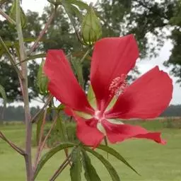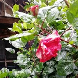 开张型木槿枝条角度大,枝条开张,抽生旺枝和中花枝比直立型强一些,可将其培养成丛生灌木状。开张型木槿,常发生主枝数过多,外围枝头过早下垂,内膛直立枝多且乱现象。