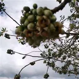 蒴果卵圆形,直径约12毫米,密被黄色星状绒毛;种子肾形,成熟种子黑褐色,背部被黄白色长柔毛。花期7-10月。