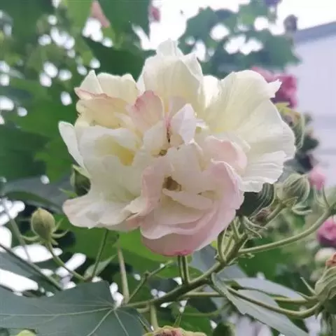 白花重瓣木槿为锦葵科木槿,属落叶灌木。本种为栽培变种,与木槿相似,仅花为白色、重瓣。…