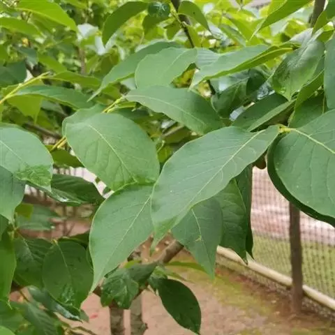 落叶乔木,高达15米,小枝及叶柄密生黄褐色柔毛,叶椭圆状卵形,矩圆状卵形或倒卵形,先端短尖,基部宽楔形或近圆形,下面淡绿色,有褐色柔毛。叶柄长1—1.5厘米,花雌雄异株或同株,雄花成短聚伞花序,雌花单生叶腋,花冠白色。果实直径不超过5厘米 。
