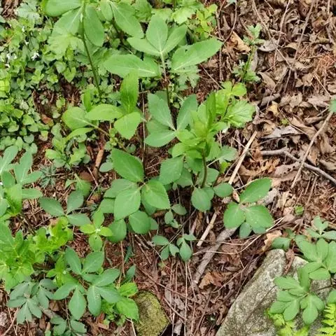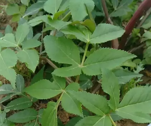 伞形科紫花前胡的根,又叫鸭脚七和野当归。紫花前胡实际是