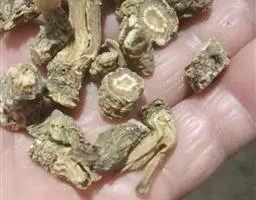 根头及主根粗短,略呈圆柱形,长1.5-3.5cm,直径1.5-3cm,下部有3-5条或更多的支根,多弯曲,长短不等,直径0.4-1cm。表面黄棕色或棕褐色,有不规则纵皱纹及椭圆形皮孔;根头部具横纹,顶端残留多层鳞片状叶基。质坚硬,易吸潮亦软,断面黄白色或淡黄棕以,形成层环黄棕色,皮部有多数棕以油点及裂隙,木部射线细密。有浓郁的香气,味甜、辛,微苦。以主根根粗长、油润、外皮色共同棕、肉质饱满、断面色黄白、气浓香者为佳。