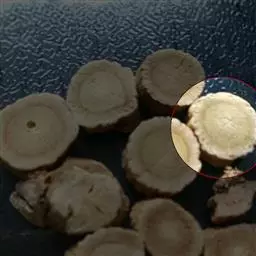 伞形科重齿毛当归的根,也就是正品药用独活的根。其根略呈圆柱形,下部分枝2-3条或更多。根头部膨大,圆锥状,多横皱纹。表面灰褐色或棕褐色,具纵皱纹和横向隆起的皮孔及细根痕。质较硬但受潮则变软,断面皮部灰白色有散在的棕色点状油室,木部灰黄色至黄棕色,形成层环棕色。有特异香气,味苦辛而微麻舌。