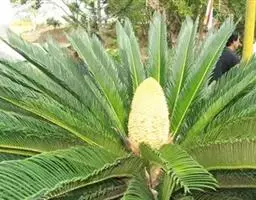 泽米苏铁科苏铁属。植物丛生,茎撑球状,叶为中型羽状复叶,簇生于茎顶,小叶为卵状椭圆形。雄雌异株,雄…