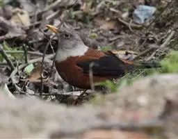 赤颈鸫(学名:Turdus ruficollis)是鸫科、鸫属中型鸟类,体长22-25厘米。上体灰褐色,有窄的栗色眉纹。颏、喉、上胸红褐色,腹至尾下覆羽白色,腋羽和翼下覆羽橙棕色。虹膜暗褐色,嘴黑褐色,下嘴基部黄色,脚黄褐色或暗褐色。