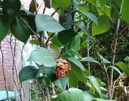 蒴果卵球形,直径4-8厘米,3-5室,每室有种子1-3粒,果皮厚木质,厚1-2厘米,表面红色,平滑,中轴长4-5厘米,种子长2.5-4厘米。