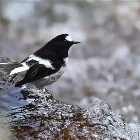 小燕尾(学名:Enicurus scouleri)体长13厘米,尾短,与黑背燕尾色彩相似但尾短而叉浅。其前额白色,翼上白色条带延至下部,且尾开叉,嘴直而壮,嘴须发达;第1枚初级飞羽大约为第2枚初级飞羽长度的一半;尾比翅长,外侧第二对和第三对尾羽最长,最外侧两对尾羽通常为白色,最外侧一对尾羽比邻近的一对外侧尾羽短;跗蹠长而纤细,色甚浅淡。