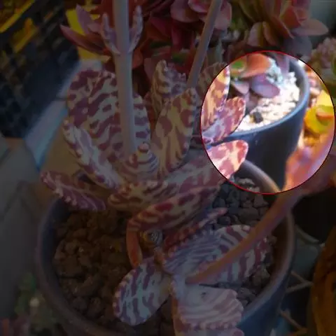 病、虫害及其防治:伽蓝菜属植物常见的虫害为根粉蚧、红蜘蛛和夜蛾类幼虫。根粉蚧主要为害幼苗根部,严重时导致植株萎缩死亡,可用 3%呋喃丹粉剂或 40%乐果乳油 2000 倍液进行防治;红蜘蛛喜吸食植株汁液,造成植株萎缩,可喷施螨类专杀药剂,如 20%三氯杀螨醇乳油 800~1000 倍液、15%哒螨灵 2000 倍液等;夜蛾幼虫则啃食植株生长点,造成植株破顶,对此可使用广谱性杀虫剂进行防治。植株在交易流通过程中很可能会感染病、虫害,故而在种植前,最好检查植株株体及根部是否带虫体或虫卵、或者有病害特征。如有发现,应及时清理,以防传染给其它植株。