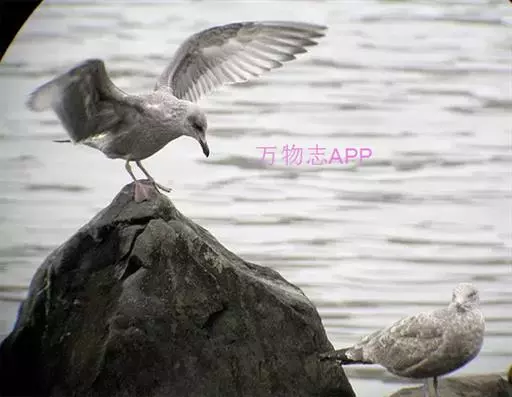 • 灰翅鸥,夏羽头、颈、腰、尾白色;肩、背和翅上覆羽鸽灰色。冬羽和夏羽相似,但头和颈具淡褐色纵纹,有时…