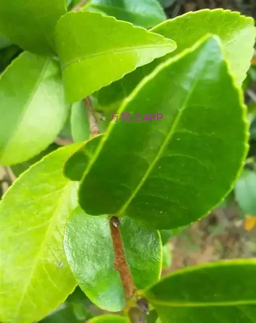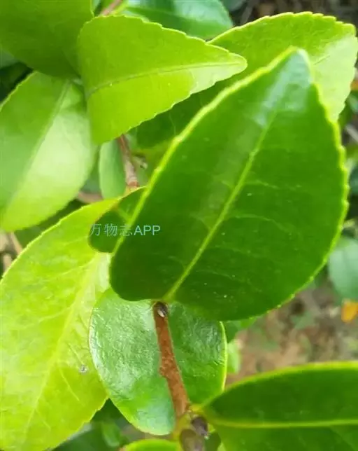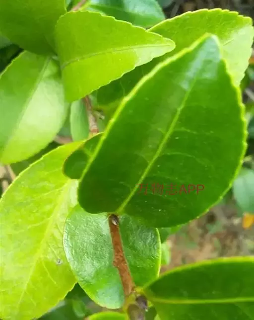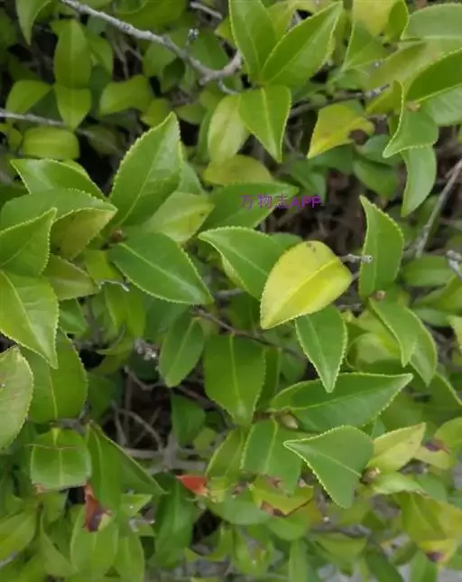 在热带地区也有乔木型茶树高达15—30米,基部树围1.5米以上,树龄可达数百年至上千年。栽培茶树往往通过修剪来抑制纵向生长,所以树高多在0.8—1.2米间。茶树树龄一般在50—60年间。茶树的叶子呈椭圆形,边缘有锯齿,叶间开五瓣白花,果实扁圆,呈三角形,果实开列后露出种子。