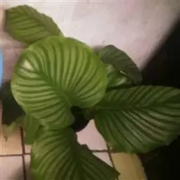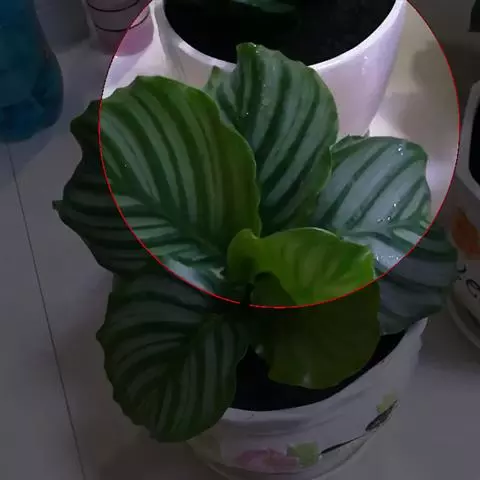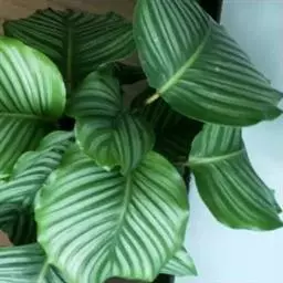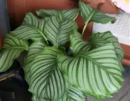红背卧花竹芋枝叶挺拔,叶面绿色,背面红色,十分耐看。