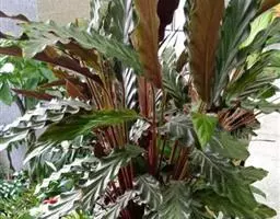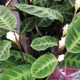 红背卧花竹芋枝叶挺拔,叶面绿色,背面红色,十分耐看,是较好的室内观叶植物。盆栽宜点缀宾馆厅堂、车站…