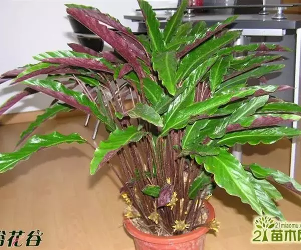 红背卧花竹芋枝叶挺拔,叶面绿色,背面红色,十分耐看,是较好的室内观叶植物。盆栽宜点缀宾馆厅堂、车站、码头的休息室和商店橱窗。