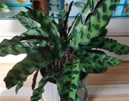 猫眼竹芋 :竹芋科,肖竹芋属多年生常绿草本观叶植物。株高可达100厘米,叶片长椭圆形,头状花序,…
