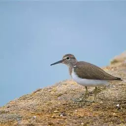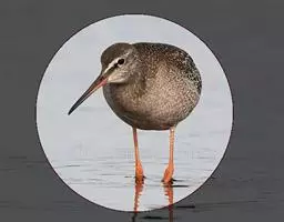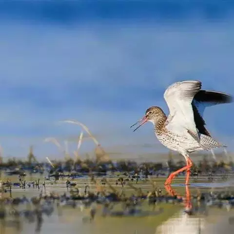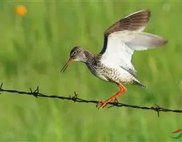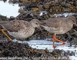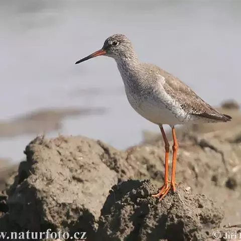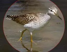 红脚鹬:体长28厘米,上体褐灰,下体白色,胸具褐色纵纹。飞行时腰部白色明显,次级飞羽具明显白色外缘。…