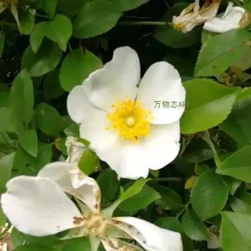 白蔷薇:直立灌木,高约2米;小枝有不等钩状皮刺,有时混有刺毛。小叶通常5,稀7,宽椭圆形或卵形,…