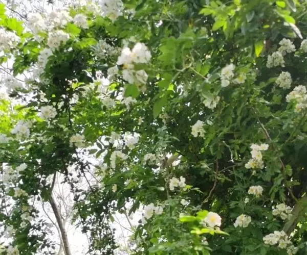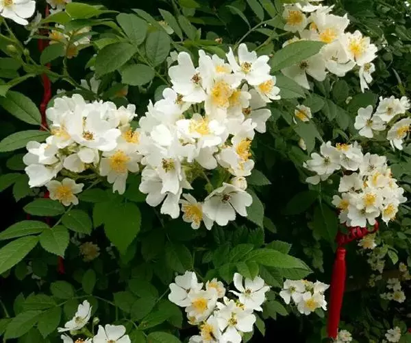 明代顾磷曾歌咏曰:“百丈蔷薇枝,缭绕成洞房。蜜叶翠帷重,浓花红锦张。张著玉局棋,遣此朱夏长。香云落衣袂,一月留余香。”