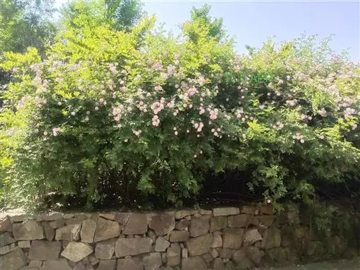 于此单说平常小花蔷薇,杜甫家里的那道篱笆或许就是由此花结成,盖因此花是最佳的结篱缀屏之物。蔷者,从墙,薇者,细小的草木。如此释义即可见蔷薇习性,其柔弱的枝条需依仗坚墙或竹篱的扶持才能够葳蕤。只要下得功夫,那蔷薇花织出的篱笆墙是能够对得起主人的耳目心神的。