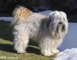 拉萨犬是食肉目犬科犬属哺乳动物。头盖狭窄,黑色的鼻子及丰厚的长毛;两颊胡须及颚部胡须很长;厚实的耳朵下垂;眼古铜色,大小中等,椭圆状;身长比身高长,背部水平,腰部强健;被毛上毛长粗且直,下毛丰厚;沿着背骨,被毛左右清楚分开;四肢以足部由密集丰厚的长毛覆盖着;前肢直,后肢肌肉十分发达;足部坚挺呈圆形,肉趾特别厚;尾毛密集,尾跟高,尾巴朝上卷曲,毛尖容易纠结在一起。寿命为12-14年。拉萨犬原产于中国西藏,现广泛分布于世界各地。吃苦耐劳、个性独立友善、聪明自信、活泼热情、忠心耿耿且沉着冷静,但对陌生人有高度的警觉性。适合饲养在家庭中。不易训练。饲养管理上,需定时修剪会进入眼睛的毛;被毛需要经常擦拭和彻底梳理,以免显得脏污蓬乱。拉萨犬是西藏地区四大名犬之一。1934年,拉萨犬被认定为独立品种。据说饲养此犬者可以增福和驱魔,以前又称“驱魔圣犬”,现在则是非常理想的家庭犬。