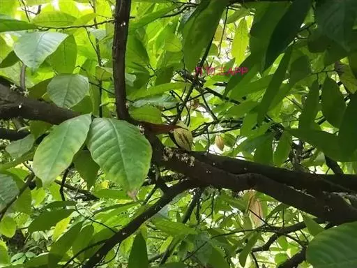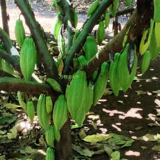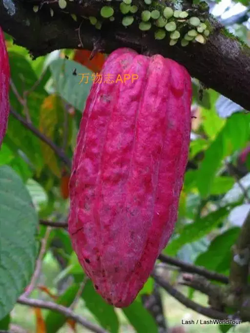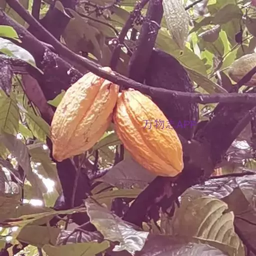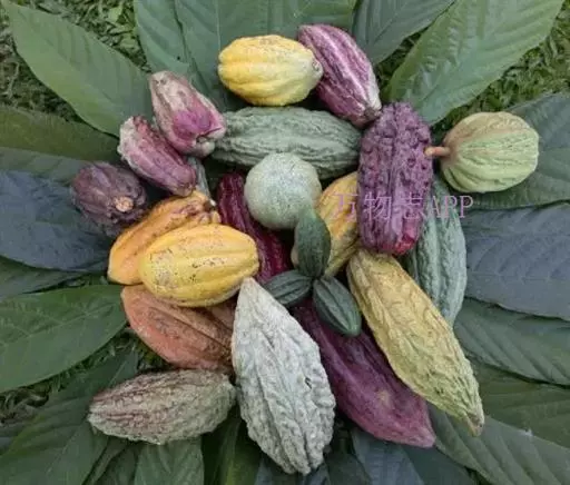 可可树 常绿乔木,高达12米,树冠繁茂;树皮厚,暗灰褐色;嫩枝褐色,被短柔毛。叶具短柄,卵状长椭圆形至倒卵状长椭圆形,长20-30厘米,宽7-10厘米,顶端长渐尖,基部圆形、近心形或钝,两面均无毛或在叶脉上略有稀疏的星状短柔毛;托咔条形,早落。