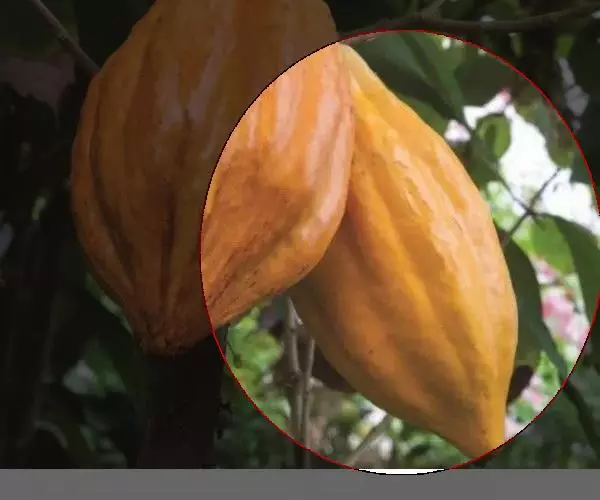 可可(学名:Theobroma cacao L.)是锦葵科、可可属常绿乔木,高达12米,树冠繁茂;树皮厚,暗灰褐色;叶具短柄,卵状长椭圆形至倒卵状长椭圆形;花排成聚伞花序,花的直径约18毫米;核果椭圆形或长椭圆形,表面初为淡绿色,后变为深黄色或近于红色,干燥后为褐色;植后4-5年开始结实,10年以后收获量大增,到40-50年后则产量逐渐减少。