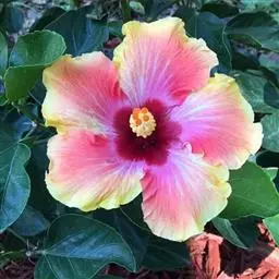 锦叶扶桑又名彩叶扶桑,为扶桑的一个变种。回叶片五颜六色,极具观赏性。植株各枝条上的叶色不尽相同,…
