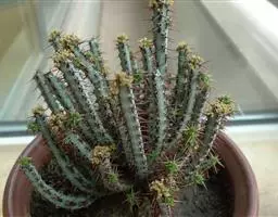 魁伟玉原产南非,是一种大戟科的多年生肉质植物,植株具粗圆筒形肉质茎,有10条以上的突出棱,…