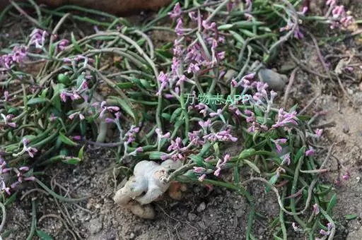 人参大戟,Monadenium montanum var.rubellum,为大戟科、翡翠塔属多肉植物,植株具甘薯状浅灰色根茎,形似人参,其顶端长有圆形肉质细茎,上有纵棱,叶质厚,近似菱形,正面灰绿色,背面紫红色,小花深粉红色。