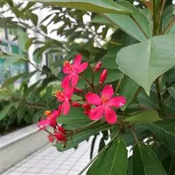 变叶珊瑚花,是大戟科麻风树属常绿灌木。变叶珊瑚花单叶互生,倒阔披针形,叶面为浓绿色,叶背为紫绿色,…
