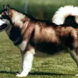 直立的耳朵很厚,呈三角形,尖端略圆。两耳分的较开。眼睛颜色深为佳,两眼凹陷,间距大,杏仁形,下眼睑向耳基部倾斜。鼻子颜色有黑色、棕色、肝褐色,鼻的颜色有时随年龄和气候改变。嘴唇多数是黑色,嘴角上翘。牙齿强壮,剪状咬合。背部直,中等长度,肌肉丰满。脚大而长,比较平,似野兔的足,趾稍分开;趾尖呈拱形肉垫厚而硬,趾之间有保护的毛,脚圆形或似猫足。尾巴比较长,自然下垂时可达 跗关节部,尾部被毛长而厚,当犬处于戒备状态时,尾上翘高于背部或位于背部一侧,休息时下垂 。