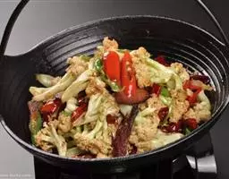 调料:干辣椒(8克)、花椒(1.5克)、色拉油(60克)、食盐(2克)、料酒(2克)、味精(1克)、酱油(6.5克)、白糖(10克)、醋(7克)、水淀粉(22克) 。