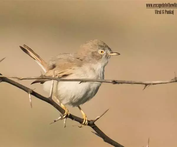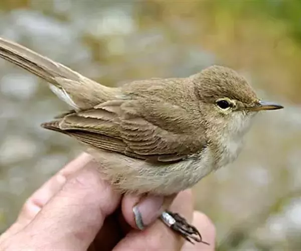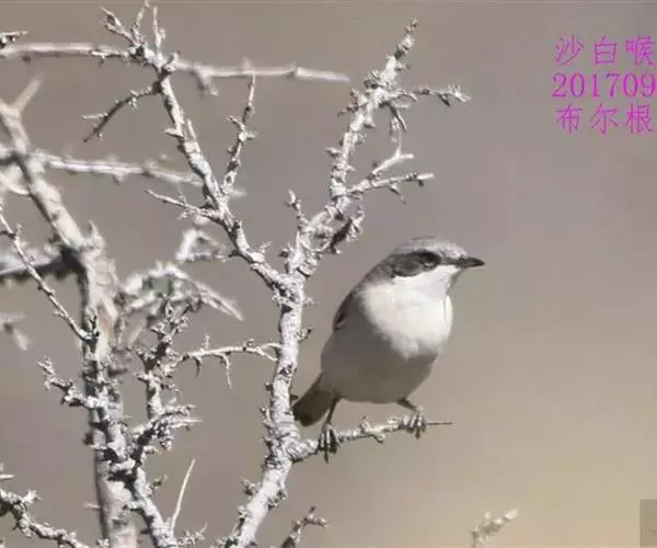 白喉林莺(学名:Sylvia curruca):体长10-13厘米,是一种类体型略小的莺鸟。喉白,上体灰褐或沙褐色,头顶较灰,贯眼纹黑褐或暗褐色。下体污白。耳羽深黑灰,胸侧及两胁沾皮黄色、褐色或淡粉红色。外侧尾羽羽缘白色。似沙白喉林莺但体羽色较深,脚色较深且嘴较大。