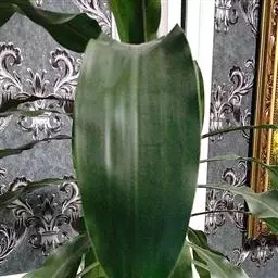 叶聚生在茎、分枝或小枝顶端,互相套迭,剑形,薄革质,长50- 00厘米,宽2-5厘米,向基部略变窄而后扩大,抱茎,无柄。