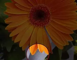 头状花序下部的叶更小,常羽状全裂。全部叶末回裂片椭圆形、长椭圆形或斜三角形,两面有稀疏的毛或无毛。头状花序单生茎顶或茎生2个头状花序。总苞宽10-15毫米。总苞片约4层。外层披针形,长3.5毫米,被短毛或无毛。中内层长椭圆形至线状倒披针形,长约5毫米,无毛。全部苞片边缘浅褐色膜质。舌状花红色,舌片长约16毫米,宽3-4毫米,长椭圆形,顶端2-3齿裂。