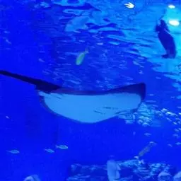 蝠鲼的英文名是“manta”,源于西班牙语,意思是“毯子”,可见其体形如何了。由于其在海中优雅飘逸的游姿跟夜空中飞行的蝙蝠很相似,所以中文名为“蝠鲼”。蝠鲼因其长得“异性”,故此很多人第一次见到它总会不知所措,它实在很难让人将其与正常的鱼类联想到一起,可是它的祖先早在中生代侏罗纪时便在海洋中畅游了。约在1亿多年前开始,它们的体形就几乎再也没有发生过什么变化,就此在海洋中定形了 。 游动的蝠鲼