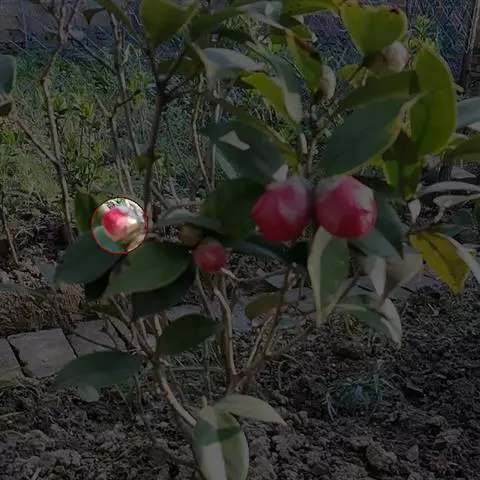 蒴果扁球形,高4.5厘米,宽5.5厘米,3爿裂开,果爿厚7毫米,种子卵球形,长约1.5厘米。在云南产的各种红花山茶当中,该种的叶及花最大,雄蕊无毛。