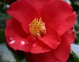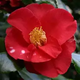 滇山茶(学名:Camellia reticulata Lindl.):灌木至小乔木,有时高达15米,嫩枝无毛。叶阔椭圆形,上面干后深绿色,发亮,下面深褐色,无毛,侧脉6-7对,边缘有细锯齿。花顶生,红色,直径10厘米,无柄;苞片及萼片10-11片,花瓣红色,6-7片,最外1片近似萼片,倒卵圆形,长2.5厘米,背有黄绢毛,其余各片倒卵圆形。蒴果扁球形,高4.5厘米,宽5.5厘米,3爿裂开,果爿厚7毫米,种子卵球形,长约1.5厘米。