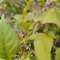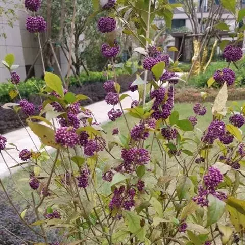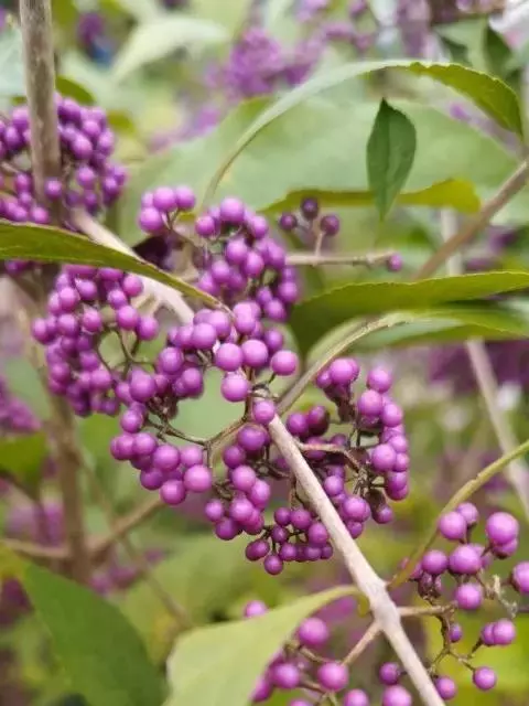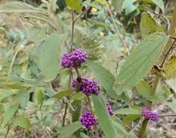 紫珠是唇形科、紫珠属落叶灌木,高约2米;叶片卵状长椭圆形至椭圆形,顶端长渐尖至短尖,基部楔形,…