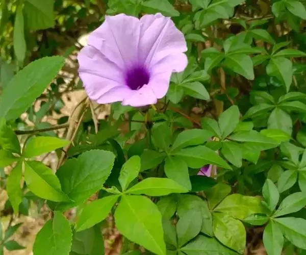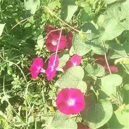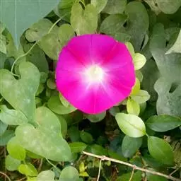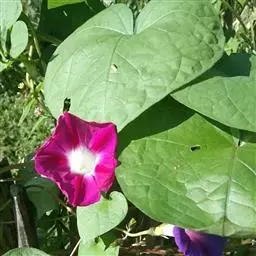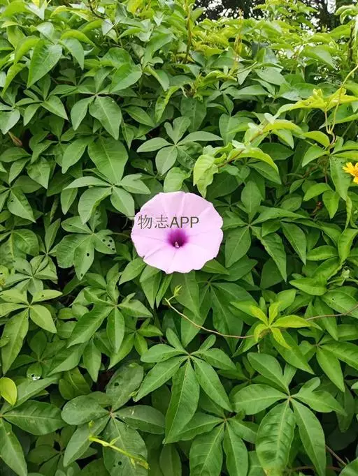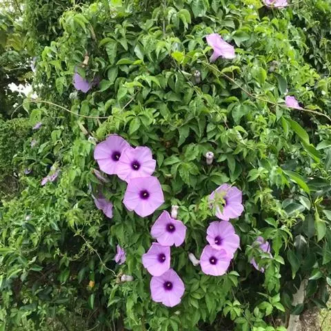 五爪金龙(学名:Ipomoea cairica (L.) Sweet)是管状花目、旋花科、番薯属多年生缠绕草本植物,全体无毛,茎细长,有细棱,叶片掌状,裂片卵状披针形、卵形或椭圆形,中裂片较大,聚伞花序腋生,苞片及小苞片均小,鳞片状,早落;萼片边缘干膜质,花冠紫红色、紫色或淡红色、偶有白色,漏斗状,子房无毛,花柱纤细,蒴果近球形,种子黑色,边缘被褐色柔毛。