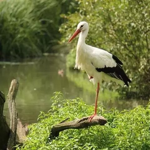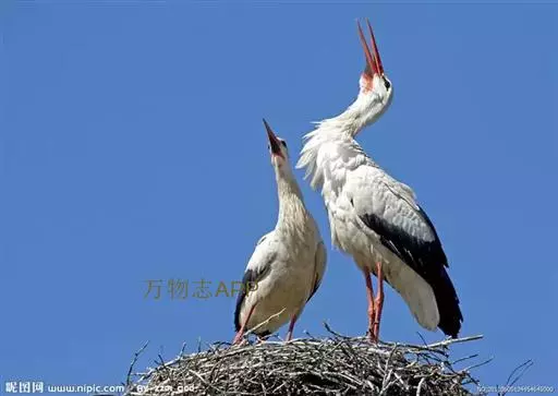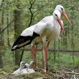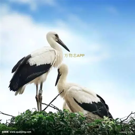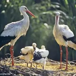 白鹳(英文名称:White Stork)是欧洲白鹳和东方白鹳的通称。属大型涉禽。其羽毛以白色为主,翅膀具黑羽,成鸟具细长的红腿和细长的红喙。共有三个亚种,大小略有不同。嘴长而粗壮,在高树或岩石上筑大型的巢,飞时头颈伸直。白鹳在欧洲是非常有名的鸟,常常在屋顶或烟囱上筑巢。为食肉动物,其食性广,包括昆虫,鱼类,两栖类,爬行类,小型哺乳动物和小鸟。觅食地大部分为具低矮植被的浅水区。一夫一妻制,但非终生。雌鸟通常每年产4枚卵,孵化需33-34天,58-64天后出巢。