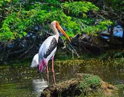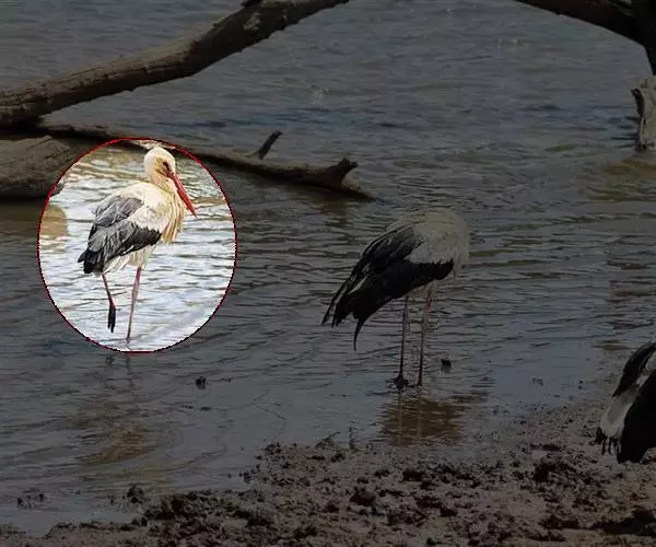 中国浙江台州天台籍著名散文家陆蠢写了一篇《鹤》,文中叙述他十七八岁时,邻哥儿在平头潭边捉到一只鸟,“长脚尖喙,头有缨冠,羽毛洁白”。开始,以为是一只鹤,抢回家里养,只见这只鸟“样子确相当漂亮,瘦长的脚,走起路来大模大样,象个“宰相步”、“头上有一簇缨 毛,略带黄色,尾部很短”、“老是缩着头颈,有时站在左脚上,有时站在右脚上,有时站在两只脚上,用金红色的眼睛斜看着人。”他们将这只鸟养了相当时日,有一天,他的舅父来了,才知道这是一只 “长脚鹭鸶”。 陆蠢所描述的这只漂亮的鸟,实际上应叫“白鹳”,在始丰溪两岸的树林中,芦苇丛里栖居。