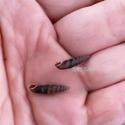 贝壳较小,成体高7~10毫米,宽3~4毫米,尖圆锥形,有6~9个螺层。壳质厚,较坚硬,壳面光滑或有粗的或细弱的纵肋,底螺层较膨大。壳面淡灰色,壳口卵圆形,具有黑色框边,外唇背侧有1条粗隆起的唇嵴。