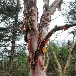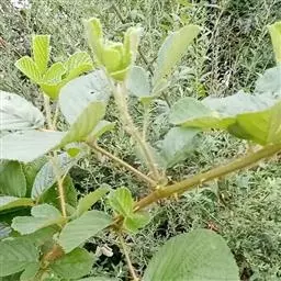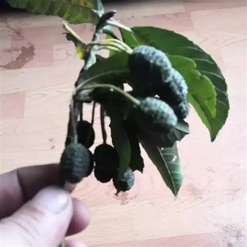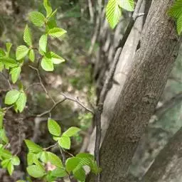 尼泊尔桤木 乔木,高达15米;树皮灰色或暗灰色,平滑;枝条暗褐色,无毛;幼枝褐色,疏被黄色短柔毛或近无毛;芽具柄,具2枚芽鳞,光滑。