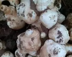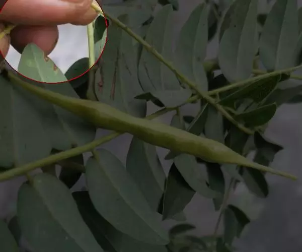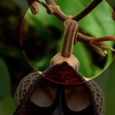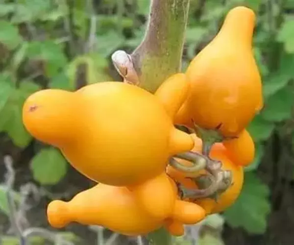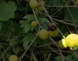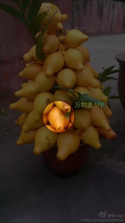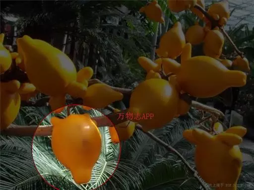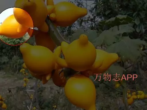 浆果倒梨状,长4.5-5.5cm,外面土黄色,内面白色,具5个乳头状凸起,种子黑褐色,近圆形压扁,直径约3mm。花果期夏秋间。
