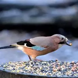 杂食性,会在地面和树上觅食,食物类型多种多样,实际上包括各种类型的植物和动物来源,如橡子和山毛榉坚果、野草籽、谷物、水果、浆果、花生、面包、肉类、小型无脊椎动物、城镇公园内的剩饭、鸟类喂食器中寻找食物,极少数情况下还会食用鸟蛋和雏鸟,主要的食物是坚果和昆虫。 [1-2]