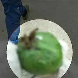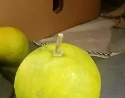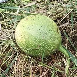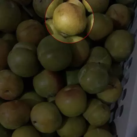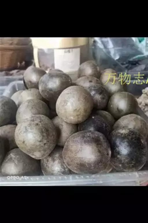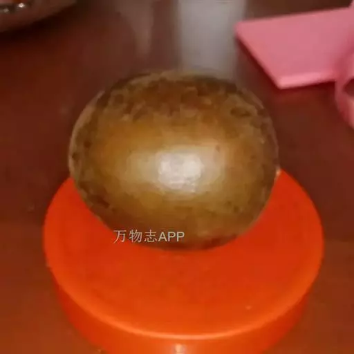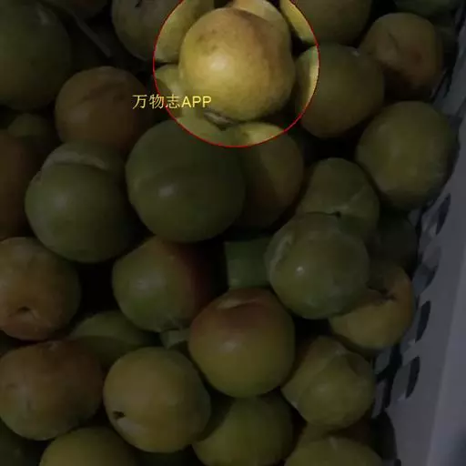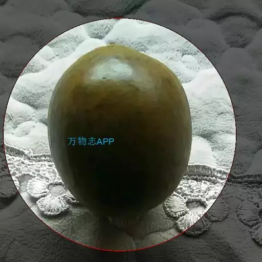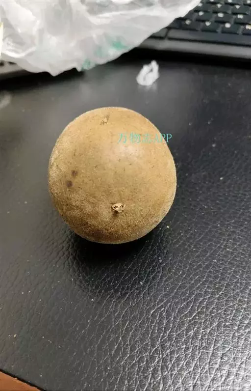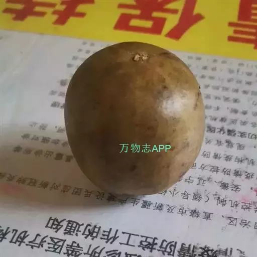 本品呈卵形、椭圆形或球形,长4.5~8.5cm,直径3.5~6cm。表面褐色、黄褐色或绿褐色,有深色斑块和黄色柔毛,有的具6~11条纵纹。顶端有花柱残痕,基部有果梗痕。体轻,质脆,果皮薄,易破。果瓤(中、内果皮)海绵状,浅棕色。种子扁圆形,多数,长约1.5cm,宽约1.2cm;浅红色至棕红色,两面中间微凹陷,四周有放射状沟纹,边缘有槽。气微,味甜。