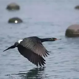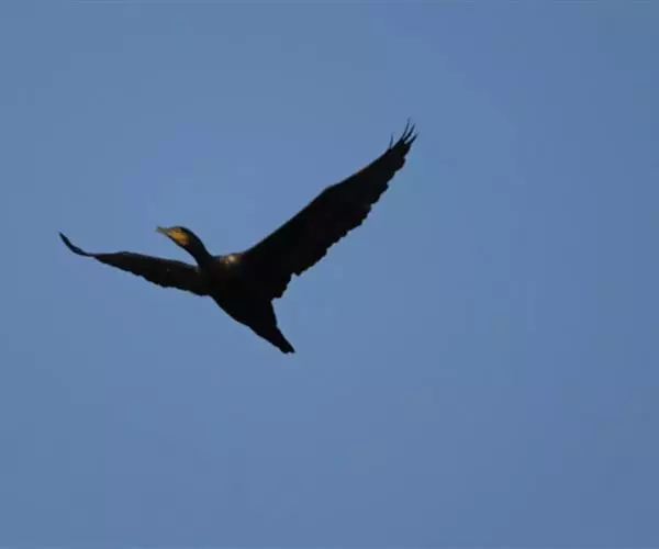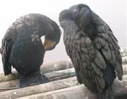 普通鸬鹚(学名:Phalacrocorax carbo)是大型水鸟。体长72-87厘米,体重大于2千克。通体黑色,头颈具紫绿色光泽,两肩和翅具青铜色光彩,嘴角和喉囊黄绿色,眼后下方白色,繁殖期间脸部有红色斑,头颈有白色丝状羽,下胁具白斑。