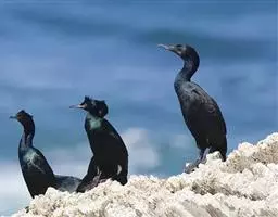 海鸬鹚:俗名乌鹈。典型的海上鸬鹚。体长约70厘米,体羽黑色具光泽。脸红色,与红脸鸬鹚甚似,但繁殖期…