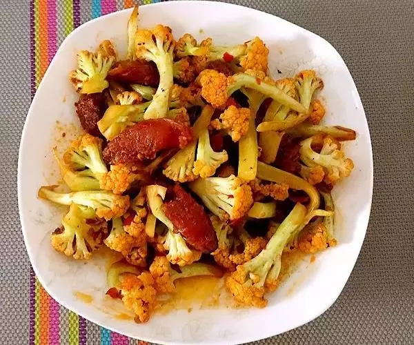 1、菜花要焯水之后再做干锅做法比较好熟,但焯水的火候要掌握好,菜花不要煮太熟,保留一些韧劲更好吃。